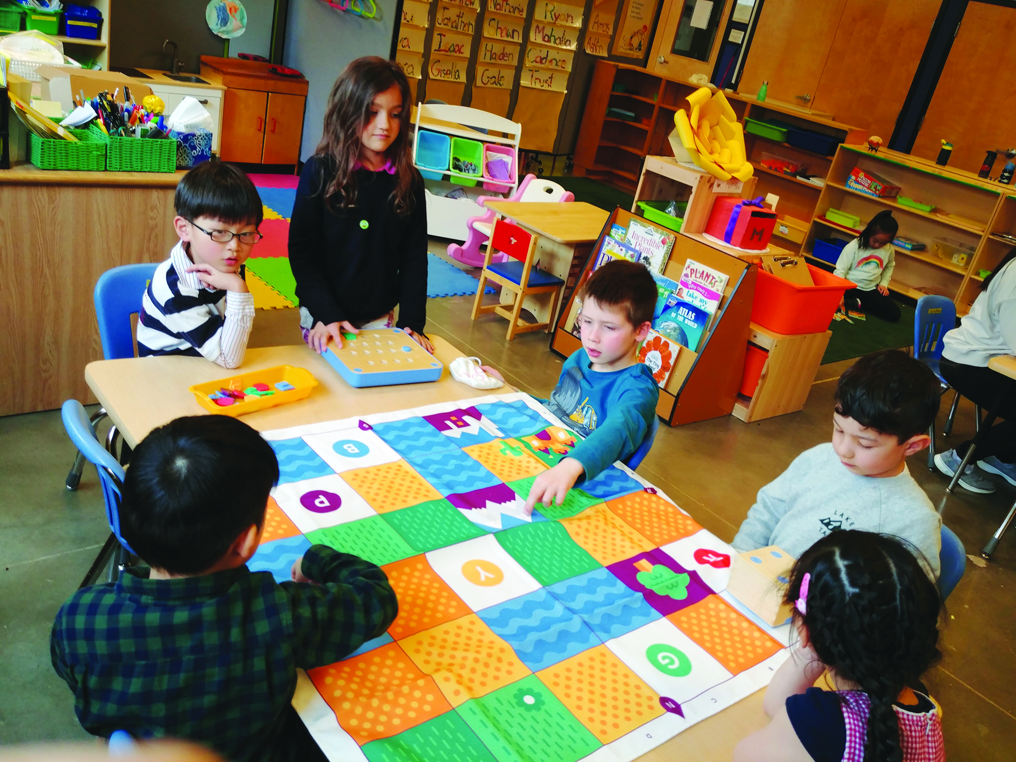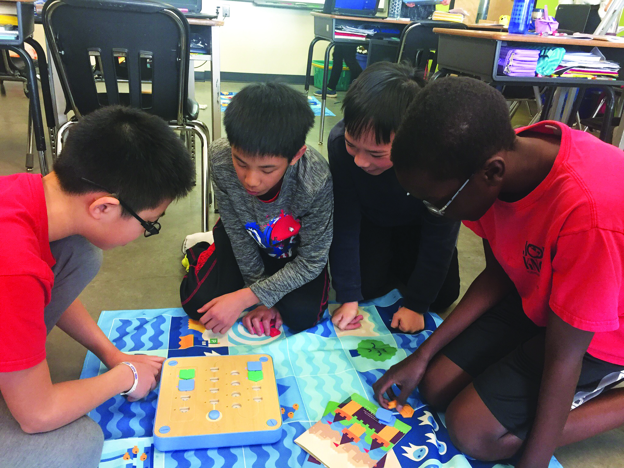 Starting with kindergarten, the school aims to “[build] upon each grade to ensure that students have an understanding of the terminology of technology and coding.” Students in kindergarten through grade 2 spend time learning the language and foundational concepts of coding through step-by-step instructions that use coding vocabulary. They participate in a variety of activities that are unplugged, age appropriate, and allow them to hone their skills in a fun and creative way. These include design-thinking projects (such as bike repair), making games, and an introduction to algorithms. Kindergarten students, for instance, are taught about “sequences” through an interactive game: