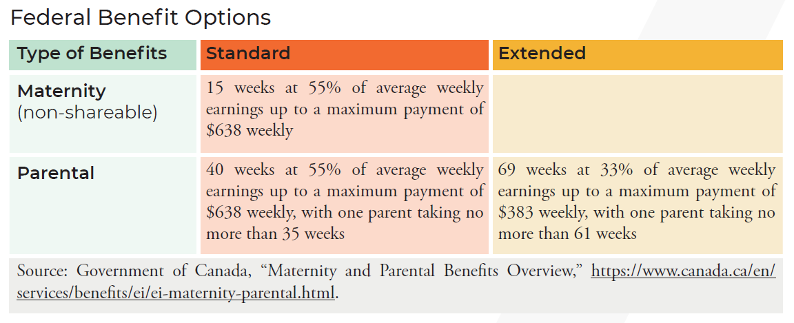 “New Ontario Mother Discovers She Doesn’t Qualify for Parental Leave Benefits,” read a recent headline on the CTV News website. 1 1 M. Walker, “New Ontario Mother Discovers She Doesn’t Qualify for Parental Leave Benefits,” CTV News, September 17, 2021, https://toronto.ctvnews.ca/new-ontario-mother-discovers-she-doesn-t-qualify-for-parental-leave-benefits-1.5590297. Kaitlin Ward was laid off from her job as a hairstylist during the pandemic and did not accrue sufficient hours to qualify for benefits through the Employment Insurance system. The report noted Ward would be returning to work months sooner than she had anticipated.