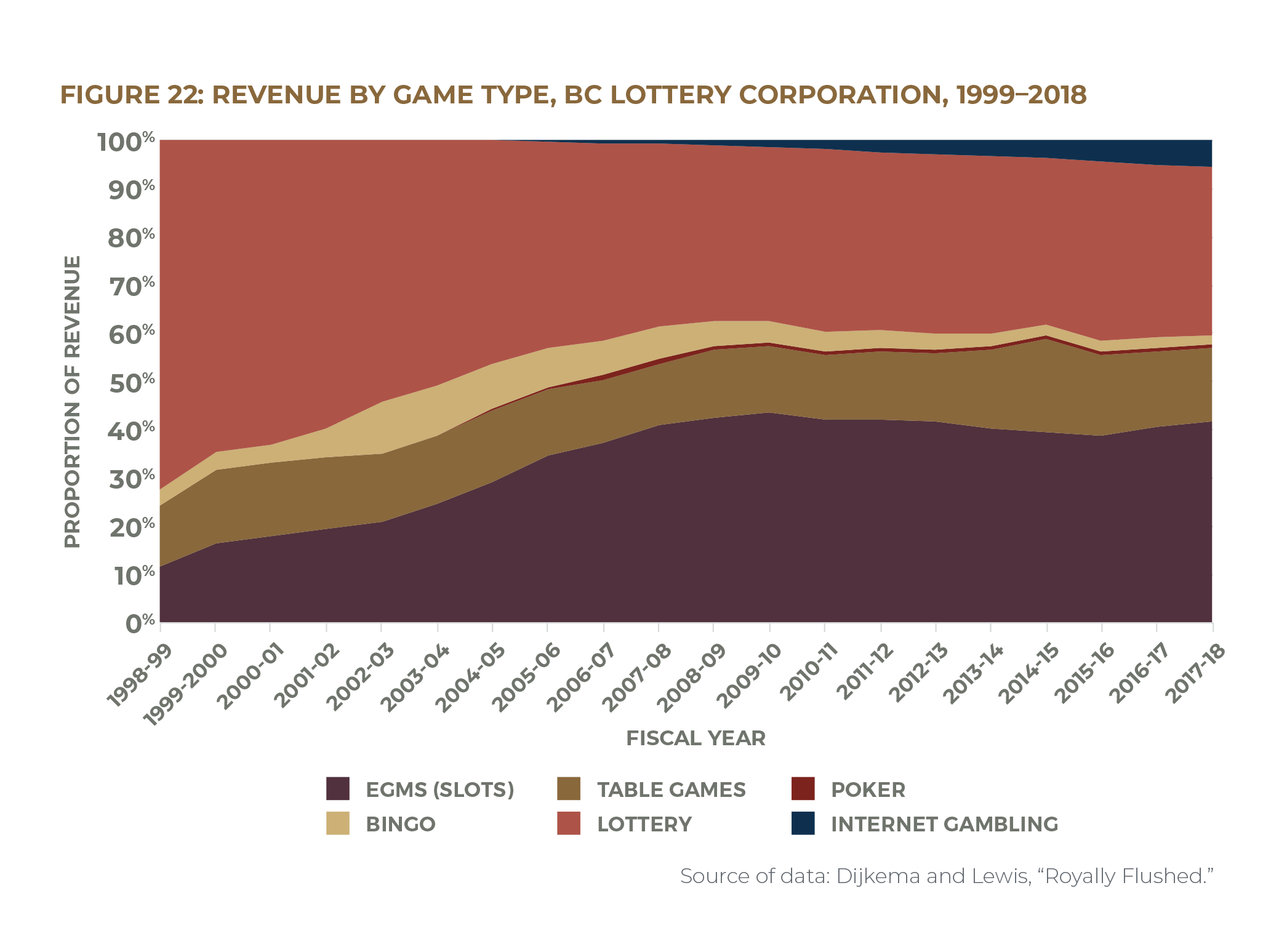 Cutting back on advertising could also reduce governments’ intentional stimulation of demand for gambling. If the purpose of investing in advertising is to encourage people to gamble more than they would without exposure to the advertising, it follows that less advertising could lead to less gambling. (And if there turns out to be no reduction in gambling behaviour after significant cuts to the marketing line, it would seem that those dollars would have been better spent elsewhere.) Research evidence suggests that higher exposure to gambling advertising is associated with both greater intention to gamble in the future and increased gambling behaviour. That is, those exposed to more gambling ads tended to gamble more often and to spend more money when they did. 216 216 Ipsos MORI, “Final Synthesis Report”; Bouguettaya et al., “The Relationship Between Gambling Advertising and Gambling Attitudes, Intentions and Behaviours.” We agree that people who desire to gamble should have an outlet for it, and the best institution to ensure that gambling is safe and fair is the state. Yet there is no good reason for a state to try to increase the amount its citizens gamble, since there is no benefit apart from increased revenue and—as we have argued extensively in our earlier papers—collecting revenue in this way is unjust and predatory. 217 217 Dijkema and Lewis, “Pressing Its Luck”; see also Dijkema and Lewis, Royally Flushed. The duty to minimize harms rather than maximize revenue is the very reason we believe that the state, not private corporations, should run the province’s gambling industry—the bottom line for a business is profit, but the bottom line for a just government is the well-being of its people.